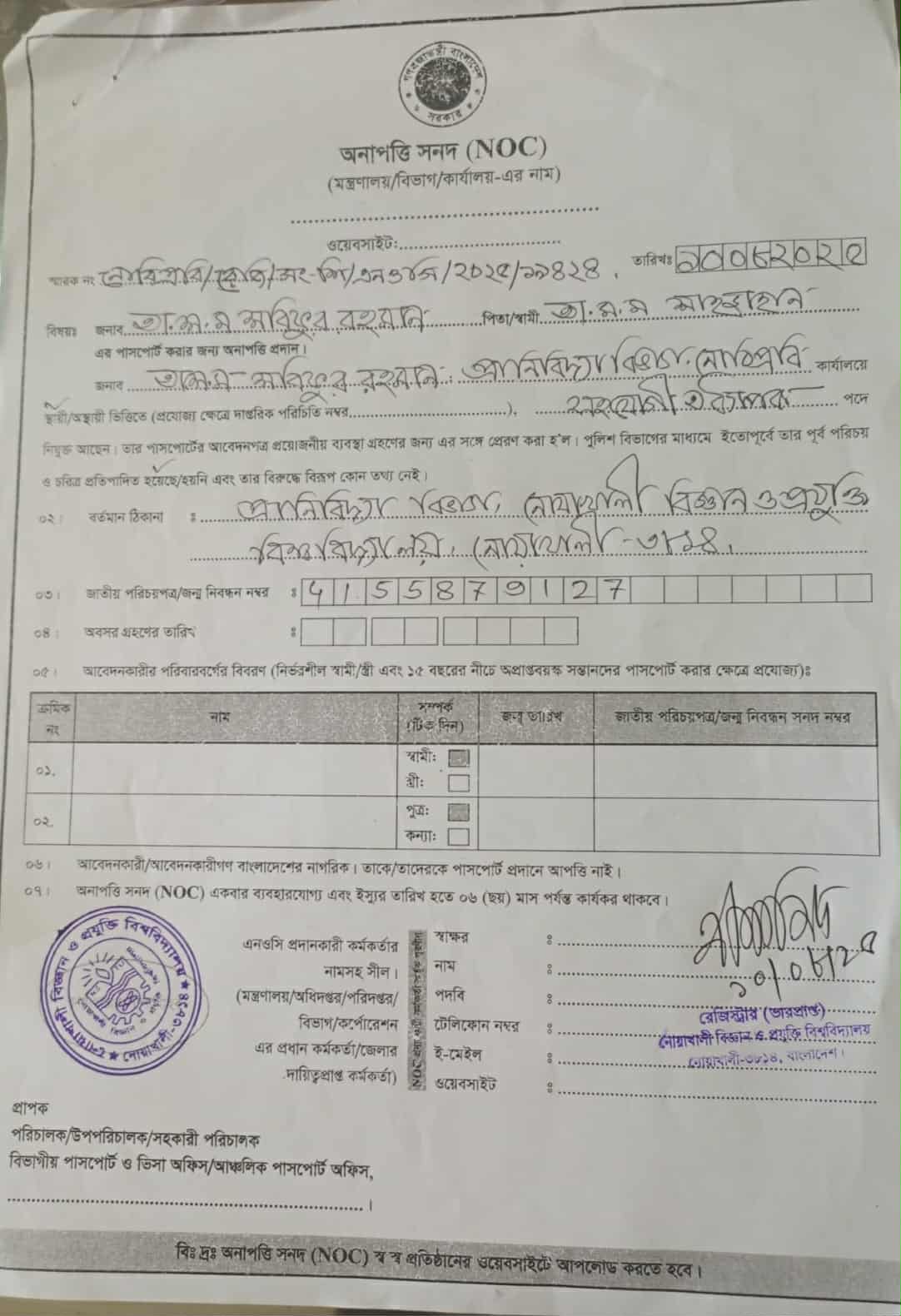 এতদ্বারা সংশ্লিষ্ট সকলের অবগতির জন্য জানানো যাচ্ছে যে, নোয়াখালী বিজ্ঞান ও প্রযুক্তি বিশ্ববিদ্যালয়ের শিক্ষক-কর্মকর্তা এবং কর্মচারীবৃন্দের পাসপোর্ট ও ভিসা সংক্রান্ত কার্যাবলী এবং বহির্গমনের জন্য এনওসি ও অফিস আদেশ (জিও) বিশ্ববিদ্যালয়ের ওয়েবসাইট এ প্রদর্শনের ক্ষেত্রে পাসপোর্ট/ইমিগ্রেশন অফিসে গমনের কমপক্ষে তিনদিন পূর্বে শুধু সাইবার সেন্টার দপ্তরের ইমেইল এড্রেস এ প্রেরণ ও সঠিকভাবে আপলোড হয়েছে কিনা তা পর্যালোচনা করে পাসপোর্ট ও ইমিগ্রেশন অফিস এ গমনের অনুরোধ করা যাচ্ছে ।সাইবার সেন্টার দপ্তরের প্রাতিষ্ঠানিক ইমেইল এড্রেস (Cyber Center Support)